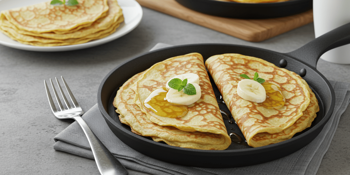 Laissez cuire 1 à 2 minutes jusqu’à ce que les bords se décollent, puis retournez la crêpe avec une spatule et poursuivez la cuisson 1 minute.
